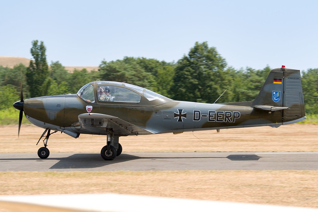 During the Fly-In, many historical aircraft were on display, both on the ground and in the air, as two F-16s soars through the air on Sunday afternoon, and a T-28 Trojan, Pilatus PC-7 and PC-12. We flew to Zwartberg Together with the Seagull formation with their Focke Wulf Piaggio 149-D's